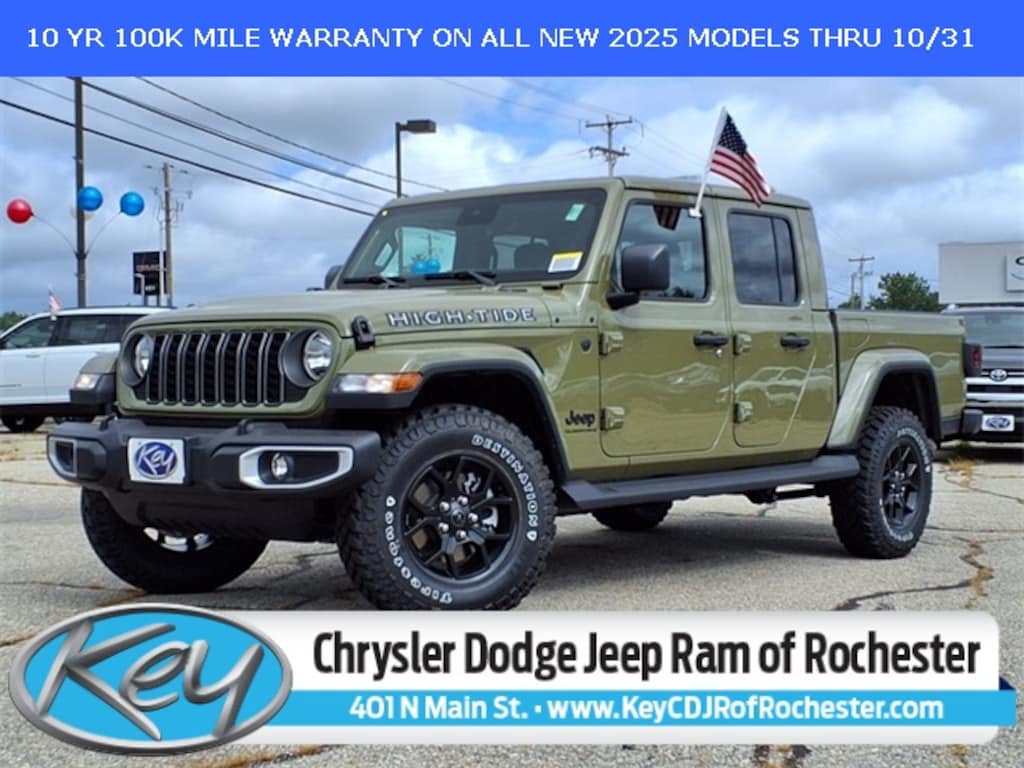 Key Chrysler Dodge Jeep Ram of Rochester is proud to present you with another True Market Priced Vehicle. This 2025 Jeep Gladiator is loaded with the following Factory Options: Convenience Group (Corning Gorilla Glass, Daytime Running Lamp System, Emergency/Assistance Call, Front Door Locks 2-Door Passive Entry, Heated Front Seats, Heated Steering Wheel, Remote Start System, and Universal Garage Door Opener), Quick Order Package 24Q High Tide (97 MPH Vehicle Max Speed Calibration, Advanced Brake Assist, Automatic Headlamps, Body Color 3-Piece Hard Top, Body Color Fender Flares (2-Piece), Deep Tint Sunscreen Windows, Freedom Panel Storage Bag, Full Length Floor Console Premium Armrest, Full Speed Forward Collision Warning Plus, Hard Seat Back, High Tide, High Tide Tailgate & Hood Decals, Integrated Radar Camera Module (IRCM), Leather Wrapped Park Brake Handle, Leather Wrapped Shift Knob, Power 4-Way Driver Lumbar Adjust, Power 4-Way Passenger Lumbar Adjust, Power Adjust 8-Way Driver Seat, Power Adjust 8-Way Front Passenger Seat, Power Heated Mirrors, Premium Door Trim Panel, Premium McKinley Trimmed Seats, Premium Wrapped Steering Wheel, Rear Armrest w/Cupholder Seat, Rear Sliding Window, Rear Window Defroster, Security Alarm, Sun Visors w/Illuminated Vanity Mirrors, Wheels: 17" x 7.5" Painted Black, and Willys Suspension), Technology Group (115V Auxiliary Power Outlet, 12.3" Touchscreen Display, 400W Inverter, 4G LTE Wi-Fi Hot Spot, Alexa Built-In, Apple CarPlay, Auto-Dimming Rear-View Mirror, Bluetooth Wireless Speaker, Connected Travel & Traffic Services, Connectivity - US/Canada, Google Android Auto, GPS Antenna Input, GPS Navigation, HD Radio, Integrated Center Stack Radio, Integrated Voice Command w/Bluetooth, Media Hub w/2 Charge Only USBs, Radio: Uconnect 5 Nav w/12.3" Display, SiriusXM Radio Service, SiriusXM w/360L, and USB Host Flip), 110 MPH Vehicle Max Speed Calibration, 3.73 Rear Axle Ratio, 4-Wheel Disc Brakes, 8 Speakers, ABS brakes, Air Conditioning, Alpine Premium Audio System, AM/FM radio: SiriusXM, Apple CarPlay/Android Auto, Brake assist, Cloth Low-Back Bucket Seats, Compass, Delay-off headlights, Driver door bin, Driver vanity mirror, Dual front impact airbags, Dual front side impact airbags, Electronic Stability Control, Front anti-roll bar, Front Bucket Seats, Front Center Armrest w/Storage, Front fog lights, Front License Plate Bracket, Front reading lights, Illuminated entry, Integrated roll-over protection, Low tire pressure warning, Manufacturer's Statement of Origin, Normal Duty Suspension, Occupant sensing airbag, Outside temperature display, Overhead airbag, Panic alarm, ParkView Rear Back-Up Camera, Passenger door bin, Passenger vanity mirror, Power steering, Power windows, Radio data system, Radio: Uconnect 5 w/12.3" Display, Rear anti-roll bar, Rear reading lights, Remote keyless entry, Side Steps, Speed control, Split folding rear seat, Steering wheel mounted audio controls, Tachometer, Telescoping steering wheel, Tilt steerin Call us to ask about conditional rebates. Price includes: $2000 - 2025 National Overaged Select Inventory Bonus Cash. Exp. 11/03/2025 $2250 - 2025 National Bonu