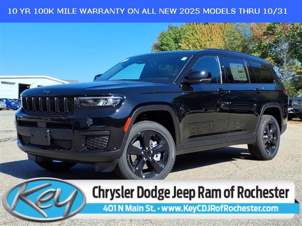 Key Chrysler Dodge Jeep Ram of Rochester is proud to present you with another True Market Priced Vehicle. This 2025 Jeep Grand Cherokee L Altitude X is loaded with the following Factory Options: Quick Order Package 23M Altitude X (115V Auxiliary Power Outlet, 3rd Row Charge-Only USB Ports, Altitude X, Black Headliner, Capri Leatherette/Suede Seats, Delete Laredo Badge, Gloss Black Exterior Accents, Heated Front Seats, Heated Steering Wheel, Power Liftgate, Power Sunroof, Rain Sensitive Windshield Wipers, Remote Start System, Selectable Tire Fill Alert, Wheels: 18" x 8.0" Fully Painted Aluminum 1, and Wireless Charging Pad), 3.45 Rear Axle Ratio, 3rd row seats: split-bench, 4-Wheel Disc Brakes, 6 Speakers, ABS brakes, Air Conditioning, Alloy wheels, AM/FM radio: SiriusXM, Anti-whiplash front head restraints, Automatic temperature control, Brake assist, Bumpers: body-color, Cloth Seats, Compass, Delay-off headlights, Driver door bin, Driver vanity mirror, Dual front impact airbags, Dual front side impact airbags, Electronic Stability Control, Emergency communication system, Four wheel independent suspension, Front anti-roll bar, Front Bucket Seats, Front Center Armrest w/Storage, Front dual zone A/C, Front License Plate Bracket, Front reading lights, Fully automatic headlights, Heated door mirrors, Illuminated entry, Knee airbag, Low tire pressure warning, Manual Fold Seatbacks, Model Year Tracking, Normal Duty Suspension, Occupant sensing airbag, Outside temperature display, Overhead airbag, Overhead console, Panic alarm, ParkView Rear Back-Up Camera, Passenger door bin, Passenger vanity mirror, Power door mirrors, Power driver seat, Power steering, Power windows, Radio data system, Radio: Uconnect 5 w/8.4" Display, Rear air conditioning, Rear anti-roll bar, Rear reading lights, Rear window defroster, Rear window wiper, Reclining 3rd row seat, Remote keyless entry, Security system, Speed control, Speed-Sensitive Wipers, Split folding rear seat, Spoiler, Steering wheel mounted audio controls, Tachometer, Telescoping steering wheel, Tilt steering wheel, Traction control, Trip computer, Variably intermittent wipers, Voltmeter, Wheels: 18" x 8.0" Fully Painted Aluminum, and Wheels: 20" x 8.5" Gloss Black Painted Aluminum!! Call us to ask about conditional rebates. Price includes: $2000 - 2025 National Retail Bonus Cash . Exp. 11/03/2025 $500 - 2025 National Jeep Monopoly Money Bonus Cash . Exp. 11/03/2025