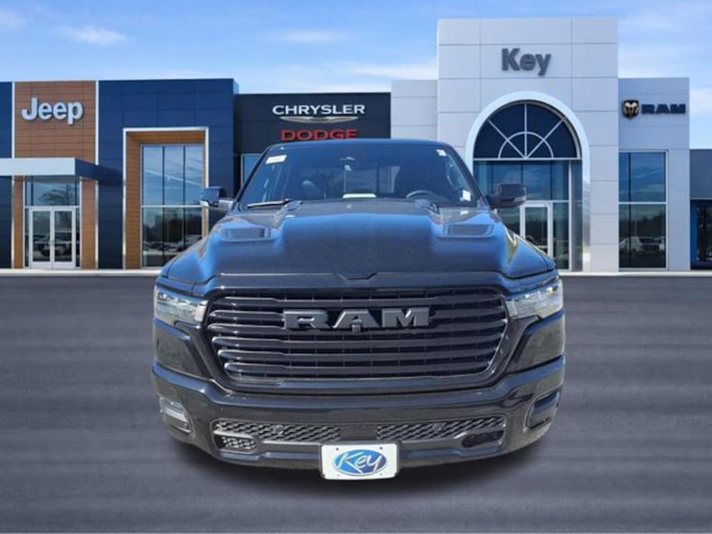 Key Chrysler Dodge Jeep Ram Newcastle is proud to present you with another True Market Priced Vehicle. This 2026 Ram 1500 Laramie is loaded with the following Factory Options: Bed Utility Group (Exterior 115V AC Outlet, MOPAR 4 Adjustable Cargo Tie-Down Hooks, and MOPAR Spray in Bedliner), Laramie Level 2 Equipment Group (14.4" Touchscreen Display, 4G LTE Wi-Fi Hot Spot, Cluster 12" TFT Color Display, Connected Travel and Traffic Services, Connectivity - US/Canada, Front Passenger Interactive Display, GPS Navigation, Harman/Kardon 19 Speaker Premium Sound, Integrated Center Stack Radio, Integrated Voice Command with Bluetooth, Power Tailgate, Radio: Uconnect 5 Nav with 14.4" Display, Rain Sensitive Windshield Wipers, SiriusXM Radio Service, SiriusXM with 360L, and USB Host Flip), Night Edition (Accent Color Door Handles, Accent Color Premium Power Mirrors, Accent Color Tailgate Handle, Anti-Spin Differential Rear Axle, Auto Power-Folding Mirrors, Auto-Dimming Exterior Driver Mirror, Black Exterior Truck Badging, Black Headlamp Bezels, Black Interior Accents, Black Painted Exterior Mirrors Caps, Black Tail Lamp Bezels, Body Color Front Bumper, Body Color Rear Bumper with Step Pads, Convex Wide-Angle Exterior Mirror Insert, Dual Exhaust with Black Tips, Exterior Mirrors Approach Lamps, Exterior Mirrors Courtesy Lamps, Exterior Mirrors with Heating Element, Exterior Mirrors with Memory, Exterior Mirrors with Supplemental Signals, Grille Surround 3 Black Texture 2 Black, Pirelli Brand Tires, Proximity Approach/Departure Lamps, RAM Grille Badge - Black, Sport Performance Hood, and Wheels: 22" x 9" Forged Aluminum), Quick Order Package 21H Laramie, 10 Speakers, 3.55 Rear Axle Ratio, 4-Wheel Disc Brakes, ABS brakes, Active Noise Control System, Adjustable pedals, Air Conditioning, Alloy wheels, AM/FM radio: SiriusXM with 360L, Apple CarPlay/Android Auto, Audio memory, Auto High-beam Headlights, Auto-dimming door mirrors, Auto-dimming Rear-View mirror, Automatic temperature control, Brake assist, Bumpers: chrome, Chrome Exterior Mirrors, Compass, Delay-off headlights, Dome Dual LED Reading Lamp, Driver door bin, Driver vanity mirror, Dual front impact airbags, Dual front side impact airbags, Dual-Pane Panoramic Sunroof, Electronic Stability Control, Front anti-roll bar, Front Bucket Seats, Front Center Armrest w/Storage, Front dual zone A/C, Front fog lights, Front License Plate Bracket, Front reading lights, Front wheel independent suspension, Fully automatic headlights, Garage door transmitter, Heated door mirrors, Heated Front seats, Heated rear seats, Heated steering wheel, Illuminated entry, Leather steering wheel, Leather Trimmed Bucket Seats, LED Dome/Reading Lamp, Low tire pressure warning, Manufacturer's Statement of Origin, Memory seat, MOPAR Front and Rear Rubber Floor Mats, Navigation System, Occupant sensing airbag, Off-Road Information Pages, Outside temperature display, Overhead airbag, Overhead console, Panic alarm, ParkView Rear Back-Up Camera, Passenger door bin, Passenger vanity mirror, Pedal memory, Power door mirrors, Power driver seat, Power passenger seat, Power steering, Power windows, Radio data system, Radio: Uconnect 5 Navigation with 12.0" Display, RAM Grille Badge - Chrome, Rear anti-roll bar, Rear reading lights, Rear seat center armrest, Rear step bumper, Remote keyless entry, Security system, Speed control, Split folding rear seat, Steerin