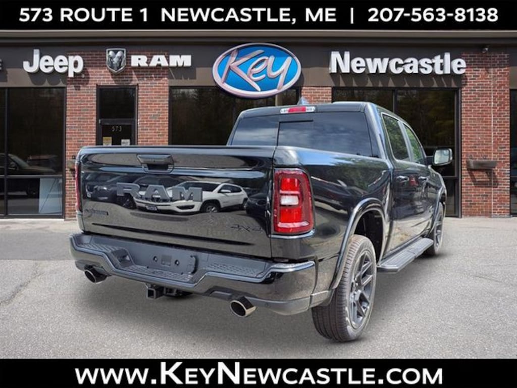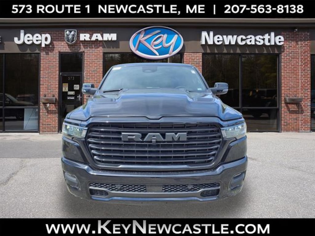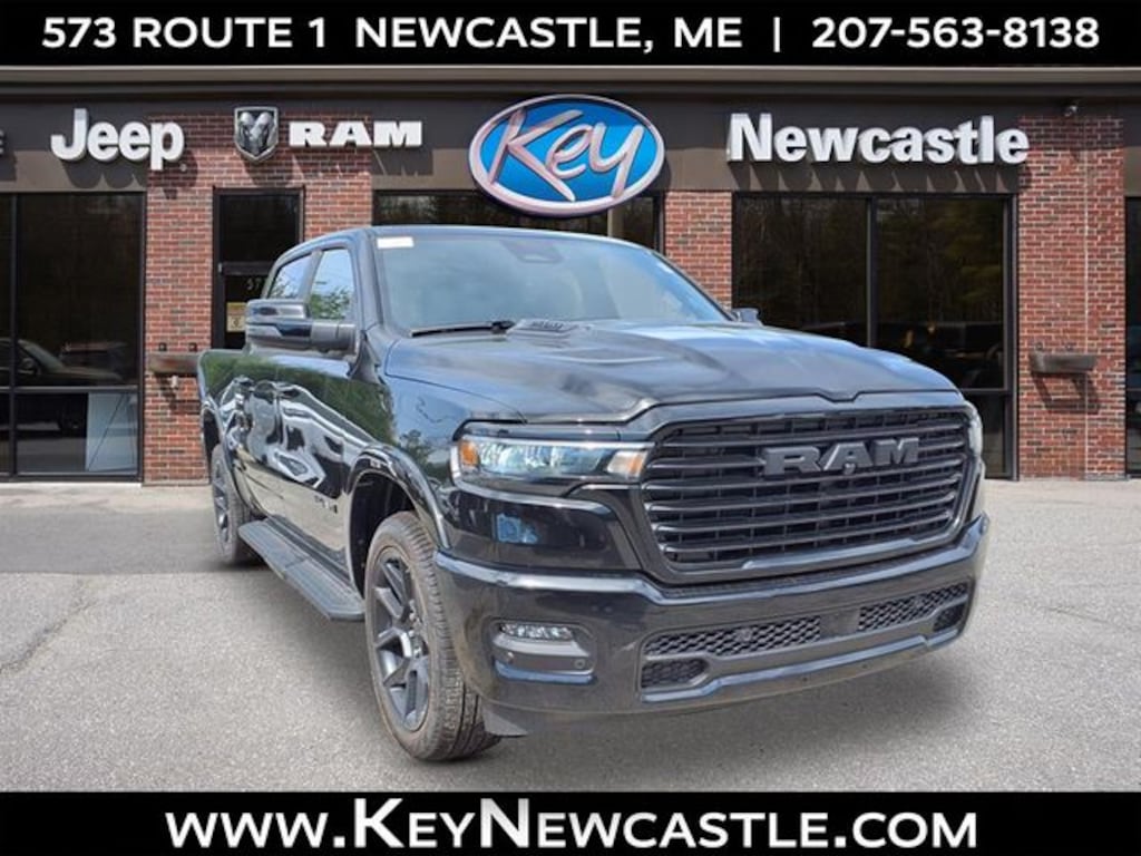 Key Chrysler Dodge Jeep Ram Newcastle is proud to present you with another True Market Priced Vehicle. This 2026 Ram 1500 Laramie is loaded with the following Factory Options: Laramie Level 2 Equipment Group (14.4" Touchscreen Display, 4G LTE Wi-Fi Hot Spot, Cluster 12" TFT Color Display, Connected Travel & Traffic Services, Connectivity - US/Canada, Front Passenger Interactive Display, GPS Navigation, harman/kardon 19 Speaker Premium Sound, Integrated Center Stack Radio, Integrated Voice Command w/Bluetooth, Power Tailgate, Radio: Uconnect 5 Nav w/14.4" Display, Rain Sensitive Windshield Wipers, SiriusXM Radio Service, SiriusXM w/360L, and USB Host Flip), Night Edition (Accent Color Door Handles, Accent Color Premium Power Mirrors, Accent Color Tailgate Handle, Anti-Spin Differential Rear Axle, Auto Power-Folding Mirrors, Auto-Dimming Exterior Driver Mirror, Black Exterior Truck Badging, Black Headlamp Bezels, Black Interior Accents, Black Painted Exterior Mirrors Caps, Black Tail Lamp Bezels, Body Color Front Bumper, Body Color Rear Bumper w/Step Pads, Convex Wide-Angle Exterior Mirror Insert, Dual Exhaust w/Black Tips, Exterior Mirrors Approach Lamps, Exterior Mirrors Courtesy Lamps, Exterior Mirrors w/Heating Element, Exterior Mirrors w/Memory, Exterior Mirrors w/Supplemental Signals, Grille Surround 3 Black Texture 2 Black, Pirelli Brand Tires, Proximity Approach/Departure Lamps, RAM Grille Badge - Black, Sport Performance Hood, and Wheels: 22" x 9" Forged Aluminum), Quick Order Package 21H Laramie, 10 Speakers, 3.55 Rear Axle Ratio, 4-Wheel Disc Brakes, ABS brakes, Active Noise Control System, Air Conditioning, Alloy wheels, AM/FM radio: SiriusXM with 360L, Apple CarPlay/Android Auto, Audio memory, Auto High-beam Headlights, Auto-dimming door mirrors, Auto-dimming Rear-View mirror, Automatic temperature control, Brake assist, Bumpers: chrome, Chrome Exterior Mirrors, Compass, Delay-off headlights, Dome Dual LED Reading Lamp, Driver door bin, Driver vanity mirror, Dual front impact airbags, Dual front side impact airbags, Dual-Pane Panoramic Sunroof, Electronic Stability Control, Front anti-roll bar, Front Bucket Seats, Front Center Armrest w/Storage, Front dual zone A/C, Front fog lights, Front License Plate Bracket, Front reading lights, Front wheel independent suspension, Fully automatic headlights, Garage door transmitter, Heated door mirrors, Heated Front seats, Heated rear seats, Heated steering wheel, Illuminated entry, Leather steering wheel, Leather Trimmed Bucket Seats, LED Dome/Reading Lamp, Low tire pressure warning, Manufacturer's Statement of Origin, Memory seat, Mopar Black Tubular Side Steps, MOPAR Front & Rear Rubber Floor Mats, Navigation System, Occupant sensing airbag, Off-Road Information Pages, Outside temperature display, Overhead airbag, Overhead console, Panic alarm, ParkView Rear Back-Up Camera, Passenger door bin, Passenger vanity mirror, Power door mirrors, Power driver seat, Power passenger seat, Power steering, Power windows, Radio data system, Radio: Uconnect 5 Nav w/12.0" Display, RAM Grille Badge - Chrome, Rear anti-roll bar, Rear reading lights, Rear seat center armrest, Rear step bumper, Remote keyless entry, Security system, Speed control, Split folding rear seat, Steering wheel mounted audio controls, Tachometer, Telescoping steering wheel, Tilt steering wheel, Traction control, Trailer Brake Control, Trip computer, Turn