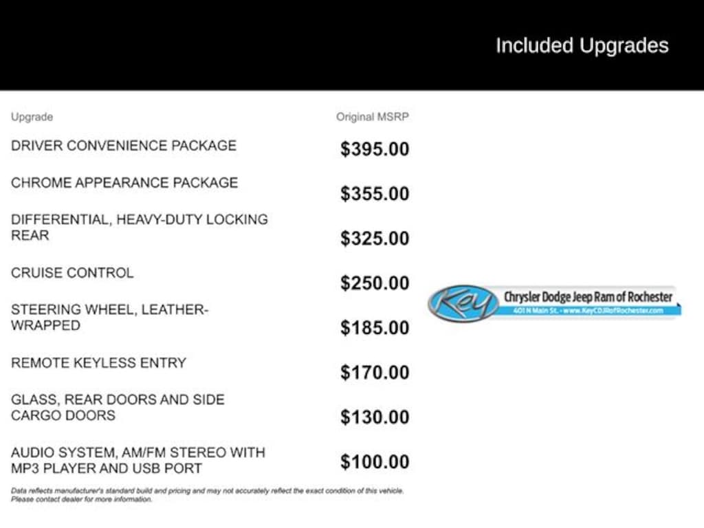 Key Chrysler Dodge Jeep Ram of Rochester is proud to present you with another True Market Priced Pre-Owned Vehicle. Transparent Pricing Of $ 16899 !! This 2018 Chevrolet Express 2500 Work Van Cargo is loaded with the following Factory Options: Chrome Appearance Package (Chrome Grille and Front & Rear Chrome Bumpers w/Step-Pad), Driver Convenience Package (Cruise Control and Tilt Steering Wheel), Preferred Equipment Group 1WT, 16" x 6.5" Steel Wheels, 2 Speakers, 3.42 Rear Axle Ratio, 4-Wheel Disc Brakes, ABS brakes, Air Conditioning, AM/FM radio, AM/FM Stereo w/MP3 Player, Bluetooth® For Phone, Delay-off headlights, Driver & Front Passenger High-Back Bucket Seats, Driver door bin, Driver's Seat Mounted Armrest, Dual front impact airbags, Dual front side impact airbags, Electronic Stability Control, Emergency communication system: OnStar Guidance, Engine Cover Console w/Swing-Out Storage Bin, Exterior Parking Camera Rear, Fixed Rear Door Window Glass, Fixed Rear Side Door Window Glass, Front anti-roll bar, Front Bucket Seats, Front Reclining High-Back Bucket Seats, Front wheel independent suspension, Full-Length Black Rubberized-Vinyl Floor Covering, Fully automatic headlights, Heavy-Duty Rear Locking Differential, Leather-Wrapped Steering Wheel, Low tire pressure warning, Occupant sensing airbag, Overhead airbag, Passenger cancellable airbag, Passenger door bin, Passenger seat mounted armrest, Power steering, Power windows, Radio: AM/FM Stereo w/MP3 Player/Seek & Scan, Rear & Side Cargo Door Glass, Rear Side Door Glass Window Security Bar, Reclining Front Bucket Seats w/Inboard Armrests, Remote Keyless Entry, Seat-Mounted & Head Curtain Side-Impact Air Bags, Single-Zone Manual Air Conditioning, Steering Wheel Mounted Audio Controls, Tachometer, Traction control, Trip computer, USB Port Audio System Feature, Variably intermittent wipers, Vinyl Seat Trim, and Voltmeter!!