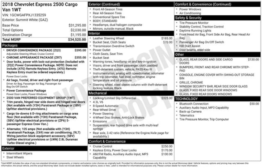 2018 Chevrolet Express 2500 Work Van Cargo Summit White 3D Cargo Van Work Van Cargo 4.3L V6 8-Speed Automatic with Overdrive RWD