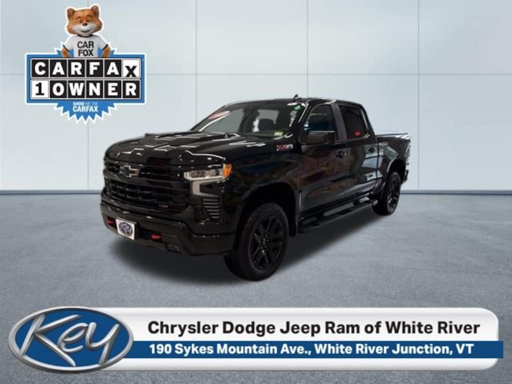 Key Chrysler Dodge Jeep Ram of White River is proud to present you with another True Market Priced Pre-Owned Vehicle. Transparent Pricing Of $ 41799 !! This 2023 Chevrolet Silverado 1500 LT Trail Boss is loaded with the following Factory Options: 8-Speed Automatic, 4WD, and Jet Black Cloth Convenience Package (10-Way Power Driver Seat w/Lumbar, 120-Volt Bed Mounted Power Outlet, 120-Volt Instrument Panel Power Outlet, Dual Rear USB Ports (Charge Only), Dual-Zone Automatic Climate Control, Electric Rear-Window Defogger, Heated Driver & Front Outboard Passenger Seats, Heated Steering Wheel, Keyless Open & Start, Remote Vehicle Starter System, Theft Deterrent System (Unauthorized Entry), and Wrapped Steering Wheel), Preferred Equipment Group 2LT (12.3" Multicolor Reconfigurable Digital Display, 6-Speaker Audio System, All-Weather Floor Liner (LPO) (AAK), Auto-Locking Rear Differential, Bluetooth® For Phone, Chevrolet Connected Access Capable, Color-Keyed Carpeting Floor Covering, Compass, Deep-Tinted Glass, Electrical Steering Column Lock, Electronic Cruise Control, EZ Lift Power Lock & Release Tailgate, Front LED Fog Lamps, HD Rear Vision Camera, Heated Power-Adjustable Outside Mirrors, High Gloss Black Mirror Caps, Inside Rear-View Mirror w/Tilt, LED Cargo Area Lighting, OnStar & Chevrolet Connected Services Capable, Performance Red Recovery Hooks, Power Front Windows w/Driver Express Up/Down, Power Front Windows w/Passenger Express Down, Power Rear Windows w/Express Down, Rear 60/40 Folding Bench Seat (Folds Up), SiriusXM w/360L, Standard Tailgate, Steering Wheel Audio Controls, Wi-Fi Hot Spot Capable, and Wireless Phone Projection), Protection Package (Chevytec Spray-On Black Bedliner and Rear Wheelhouse Liners), Suspension Package (Heavy-Duty Air Filter and Hill Descent Control), Trailering Package (Hitch Guidance), 8-Speed Automatic, 4WD, Jet Black Cloth, 220 Amp Alternator, 3.42 Rear Axle Ratio, 4-Wheel Disc Brakes, 40/20/40 Front Split-Bench Seat, 6 Speakers, 6" Rectangular Black Tubular Assist Steps (LPO), ABS brakes, Air Conditioning, Alloy wheels, AM/FM radio: SiriusXM with 360L, Apple CarPlay/Android Auto, Auto High-beam Headlights, Automatic Emergency Braking, Automatic temperature control, Brake assist, Cloth Seat Trim, Delay-off headlights, Driver door bin, Driver vanity mirror, Dual front impact airbags, Dual front side impact airbags, Electronic Stability Control, Following Distance Indicator, Forward Collision Alert, Front anti-roll bar, Front Center Armrest w/Storage, Front dual zone A/C, Front fog lights, Front Pedestrian Braking, Front reading lights, Front wheel independent suspension, Fully automatic headlights, Heated door mirrors, Heated front seats, Heated steering wheel, Illuminated entry, IntelliBeam Automatic High Beam On/Off, Lane Keep Assist w/Lane Departure Warning, Low tire pressure warning, Multi-Fl