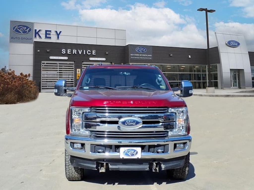 Key Ford of Rockland is proud to present you with another True Market Priced Pre-Owned Vehicle. Transparent Pricing Of $ 42617 !! This 2019 Ford F-250SD Lariat is loaded with the following Factory Options: 4WD Chrome Package (6" Angular Chrome Step Bars, Body-Color Door Handles w/Chrome Insert, Chrome Exhaust Tip, Unique Chrome Mirror Caps, and Wheels: 18" Chrome PVD Aluminum), FX4 Off-Road Package (Hill Descent Control, Off-Road Specifically Tuned Shock Absorbers, and Unique FX4 Off-Road Box Decal), GVWR: 10,000 lb Payload Package, Lariat Value Package (Easy Entry®/Exit Memory Driver's Seat Feature, LED Box Lighting, Memory Power-Adjustable Pedals, Power Heated/Cooled Driver Seat w/Memory, Power Heated/Cooled Passenger Seat, PowerScope Trailer Tow Mirrors w/Memory, and Remote Start System), Order Code 608A, Snow Plow Prep Package, 4WD, 10 Speakers, 110V/400W Outlet, 4-Wheel Disc Brakes, 6" Angular Chrome Step Bar, ABS brakes, Adjustable pedals, Air Conditioning, All-Weather Floor Mats, Alloy wheels, AM/FM radio: SiriusXM, AppLink/Apple CarPlay and Android Auto, Auto-dimming Rear-View mirror, Automatic temperature control, B&O Sound System by Bang & Olufsen, Brake assist, Bumpers: chrome, Compass, Delay-off headlights, Driver door bin, Driver vanity mirror, Dual front impact airbags, Dual front side impact airbags, Electronic Stability Control, Emergency communication system: SYNC 3 911 Assist, Exterior Parking Camera Rear, Extra Extra Heavy-Duty Alternator (240 Amp), Flow-Through Console, Front anti-roll bar, Front Bucket Seats, Front Center Armrest, Front dual zone A/C, Front fog lights, Front Leather Seating Surfaces 40/Console/40, Front reading lights, Front Splash Guards/Mud Flaps (Pre-Installed), Fully automatic headlights, Heated door mirrors, HEATED Leather steering wheel, Illuminated entry, LED Roof Clearance Lights, Low tire pressure warning, Outside temperature display, Overhead airbag, Overhead console, Panic alarm, Passenger door bin, Passenger vanity mirror, Power door mirrors, Power driver seat, Power passenger seat, Power steering, Power windows, Radio data system, Rear Parking Sensors, Rear reading lights, Rear seat center armrest, Rear Splash Guards/Mud Flaps (Pre-Installed), Rear step bumper, Rear window defroster, Remote keyless entry, Security system, SiriusXM Radio, Speed control, Split folding rear seat, Steering wheel mounted audio controls, SYNC 3 Communications & Entertainment System, Tachometer, Tailgate Step & Handle, Telescoping steering wheel, Tilt steering wheel, Traction control, Trip computer, Turn signal indicator mirrors, Upfitter Switches (6), Variably intermittent wipers, Voice-Activated Navigation, Wheels: 18" Bright Machined Cast Aluminum, and Wheels: 20" Chrome PVD Aluminum!!