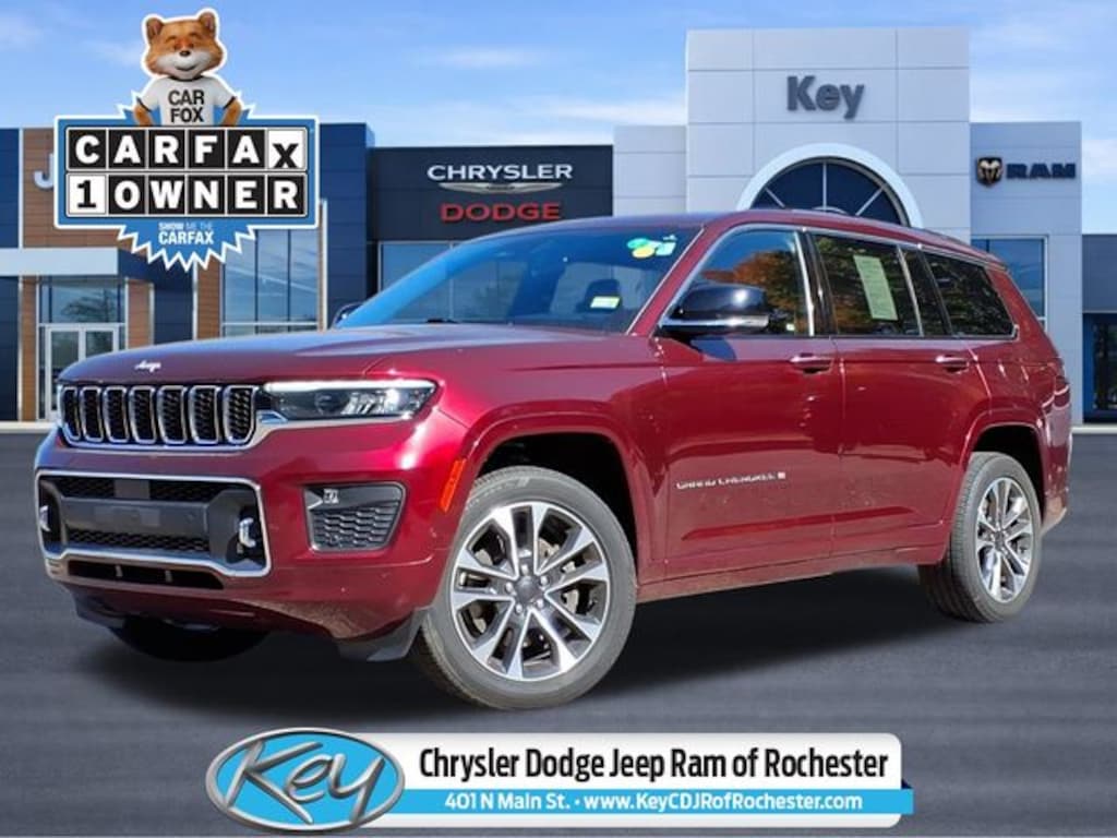 Key Chrysler Dodge Jeep Ram of Rochester is proud to present you with another True Market Priced Pre-Owned Vehicle. Transparent Pricing Of $ 31495 !! This 2022 Jeep Grand Cherokee L Overland is loaded with the following Factory Options: Quick Order Package 22N, 10.1" Touchscreen Display, 4-Wheel Disc Brakes, ABS brakes, Adaptive suspension, Apple CarPlay, Auto-leveling suspension, Four wheel independent suspension, Heated door mirrors, Power moonroof, and Traction control Quick Order Package 22N, 10.1" Touchscreen Display, 4-Wheel Disc Brakes, ABS brakes, Adaptive suspension, Apple CarPlay, Auto-leveling suspension, Four wheel independent suspension, Heated door mirrors, Power moonroof, Traction control, 10 Speakers, 19 Speakers High Performance Audio, 2nd Row 60/40 Bench w/Manual Tip/Slide, 2nd Row Seat Center Armrest/Cupholders, 3 Rear Seat Head Restraints, 3.45 Rear Axle Ratio, 3rd row seats: split-bench, 4G LTE Wi-Fi Hot Spot, 7-Passenger Seating, 950 Watt Amplifier, Active Noise Control System, Air Conditioning, All Radio Equipped Vehicles, Alloy wheels, AM/FM radio: SiriusXM with 360L, Anti-whiplash front head restraints, Audio memory, Auto High-beam Headlights, Auto-dimming door mirrors, Auto-dimming Rear-View mirror, Automatic temperature control, Brake assist, Bumpers: body-color, Center Rear 3-Point Seat Belt, Compass, Connected Travel & Traffic Services, Connectivity - US/Canada, Delay-off headlights, Disassociated Touchscreen Display, Driver door bin, Driver vanity mirror, Dual front impact airbags, Dual front side impact airbags, Electronic Stability Control, Emergency communication system, For Details, Visit DriveUconnect.com, For More Info, Call 800-643-2112, Front anti-roll bar, Front Bucket Seats, Front Center Armrest w/Storage, Front dual zone A/C, Front fog lights, Front reading lights, Fully automatic headlights, Garage door transmitter, Global Telematics Box Module (TBM), Google Android Auto, GPS Antenna Input, GPS Navigation, HD Radio, Heated front seats, Heated rear seats, Heated steering wheel, Illuminated entry, Integrated Center Stack Radio, Integrated Voice Command w/Bluetooth, Knee airbag, Leather steering wheel, Low tire pressure warning, Memory seat, Nappa Leather Seats, Navigation System, Normal Duty Suspension, Occupant sensing airbag, Outside temperature display, Overhead airbag, Overhead console, Panic alarm, Passenger door bin, Passenger vanity mirror, Power door mirrors, Power driver seat, Power Fold Seatbacks, Power Liftgate, Power passenger seat, Power steering, Power windows, Radio data system, Radio: Uconnect 5 Nav w/10.1" Display, Radio: Uconnect 5 Nav w/8.4" Display, Rain sensing wipers, Rear air conditioning, Rear anti-roll bar, Rear reading lights, Rear window defroster, Rear window