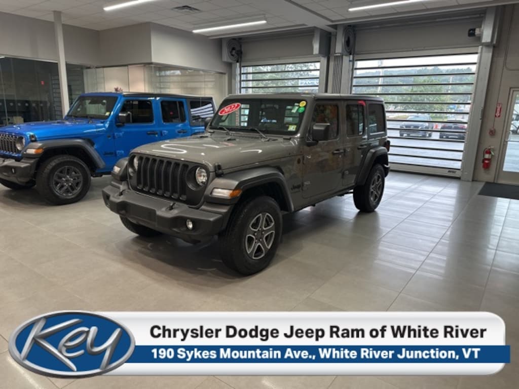 Key Chrysler Dodge Jeep Ram of White River is proud to present you with another True Market Priced Pre-Owned Vehicle. Transparent Pricing Of $ 30995 !! This 2022 Jeep Wrangler Unlimited Sport S is loaded with the following Factory Options: Cold Weather Group (Heated Front Seats, Heated Steering Wheel, and Leather Wrapped Steering Wheel), Convenience Group (Universal Garage Door Opener), Quick Order Package 22S Sport S (Automatic Headlamps, Deep Tint Sunscreen Windows, Front 1-Touch Down Power Windows, Power Heated Mirrors, Remote Keyless Entry, Security Alarm, Speed Sensitive Power Locks, Sport S, Sun Visors w/Illuminated Vanity Mirrors, and Wheels: 17" x 7.5" Tech Silver Aluminum), Technology Group (2-Door Passive Entry, Front Door Locks, Air Conditioning w/Auto Temperature Control, Air Filtering, Cluster 7.0" TFT Color Display, SiriusXM Radio Service, and SiriusXM Satellite Radio), 4-Wheel Disc Brakes, ABS brakes, Black 3-Piece Hard Top, Freedom Panel Storage Bag, No Soft Top, Rear Window Defroster, and Rear Window Wiper/Washer Cold Weather Group (Heated Front Seats, Heated Steering Wheel, and Leather Wrapped Steering Wheel), Convenience Group (Universal Garage Door Opener), Quick Order Package 22S Sport S (Automatic Headlamps, Deep Tint Sunscreen Windows, Front 1-Touch Down Power Windows, Power Heated Mirrors, Remote Keyless Entry, Security Alarm, Speed Sensitive Power Locks, Sport S, Sun Visors w/Illuminated Vanity Mirrors, and Wheels: 17" x 7.5" Tech Silver Aluminum), Technology Group (2-Door Passive Entry, Front Door Locks, Air Conditioning w/Auto Temperature Control, Air Filtering, Cluster 7.0" TFT Color Display, SiriusXM Radio Service, and SiriusXM Satellite Radio), 4-Wheel Disc Brakes, ABS brakes, Black 3-Piece Hard Top, Freedom Panel Storage Bag, No Soft Top, Rear Window Defroster, Rear Window Wiper/Washer, 110 MPH Vehicle Max Speed Calibration, 3.45 Rear Axle Ratio, 8 Speakers, Air Conditioning, AM/FM radio, Apple CarPlay/Android Auto, Aux Battery, Brake assist, Cloth Low-Back Bucket Seats, Compass, Delay-off headlights, Driver door bin, Driver vanity