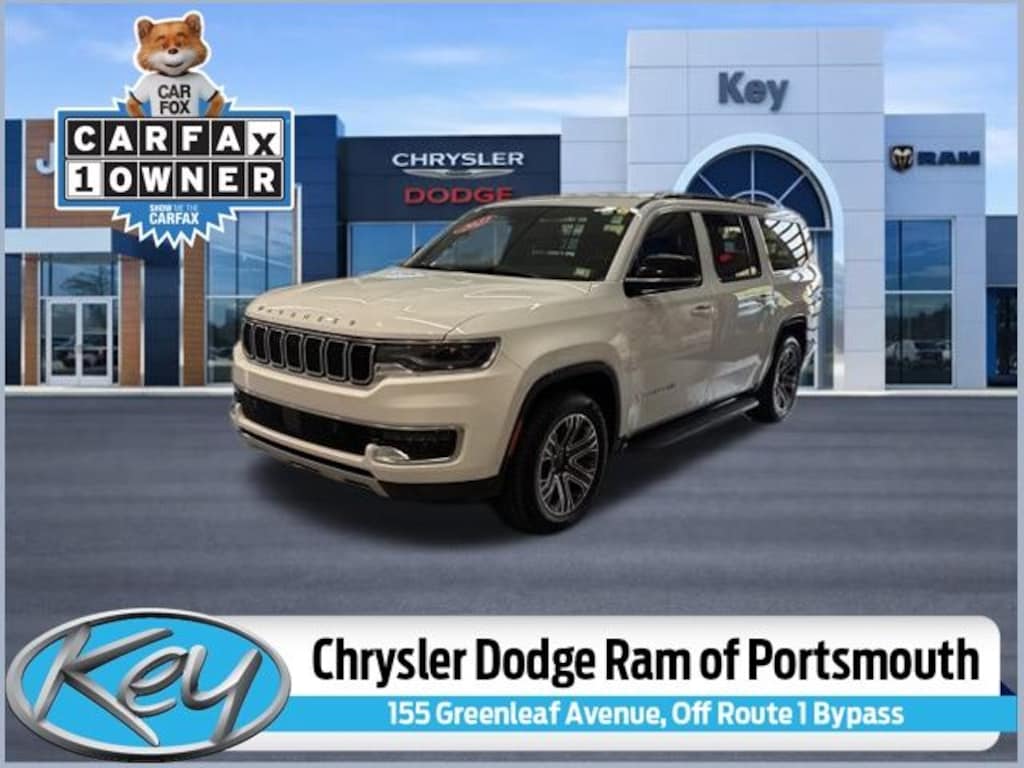 Key Chrysler Dodge Ram of Portsmouth is proud to present you with another True Market Priced Pre-Owned Vehicle. Transparent Pricing Of $ 35585 !! This 2023 Jeep Wagoneer L Series II is loaded with the following Factory Options: Quick Order Package 25J, 10 Speakers, 3.55 Rear Axle Ratio, 3rd row seats: bench, 4-Wheel Disc Brakes, ABS brakes, Adjustable pedals, Air Conditioning, Alloy wheels, AM/FM radio: SiriusXM with 360L, Anti-whiplash front head restraints, Audio memory, Auto-dimming door mirrors, Auto-dimming Rear-View mirror, Auto-leveling suspension, Automatic temperature control, Brake assist, Bumpers: body-color, Compass, Delay-off headlights, Driver door bin, Driver vanity mirror, Driver's Seat Mounted Armrest, Dual front impact airbags, Dual front side impact airbags, Electronic Stability Control, Emergency communication system: Automatic SOS Call, Exterior Parking Camera Rear, Four wheel independent suspension, Front anti-roll bar, Front Bucket Seats, Front Center Armrest w/Storage, Front dual zone A/C, Front fog lights, Front reading lights, Fully automatic headlights, Garage door transmitter, Genuine wood console insert, Genuine wood dashboard insert, Genuine wood door panel insert, Heated door mirrors, Heated front seats, Heated steering wheel, Illuminated entry, Knee airbag, Leather Trimmed Bucket Seats, Low tire pressure warning, Memory seat, Navigation System, Normal Duty Suspension, Occupant sensing airbag, Outside temperature display, Overhead airbag, Overhead console, Panic alarm, Passenger door bin, Passenger seat mounted armrest, Passenger vanity mirror, Pedal memory, Power adjustable front head restraints, Power door mirrors, Power driver seat, Power Liftgate, Power passenger seat, Power steering, Power windows, Radio data system, Radio: Uconnect 5 Nav w/10.1" Display, Rain sensing wipers, Rear air conditioning, Rear anti-roll bar, Rear reading lights, Rear seat center armrest, Rear window defroster, Rear window wiper, Reclining 3rd row seat, Remote keyless entry, Security system, Speed control, Speed-sensing steering, Speed-Sensitive Wipers, Split folding rear seat, Steering wheel memory, Steering wheel mounted audio controls, Tachometer, Telescoping steering wheel, Tilt steering wheel, Traction control, Trip computer, Turn signal indicator mirrors, Variably intermittent wipers, Ventilated front seats, Voltmeter, and Wheels: 20" x 9.0" Premium 2 Aluminum!!