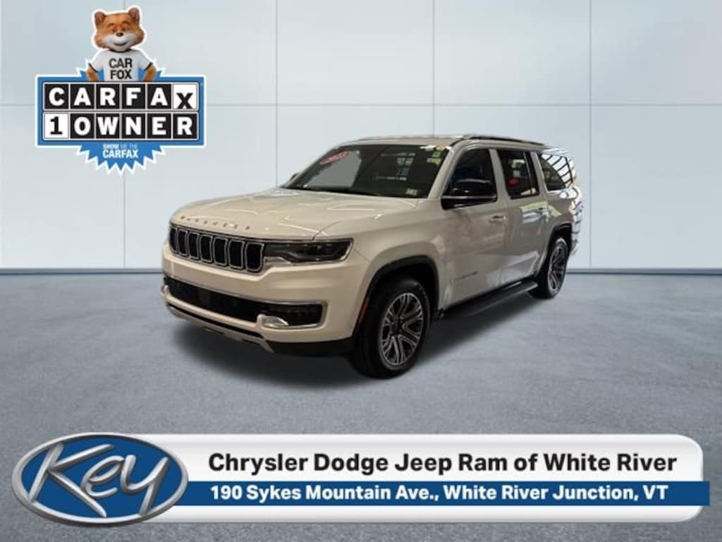 Key Chrysler Dodge Jeep Ram of White River is proud to present you with another True Market Priced Pre-Owned Vehicle. Transparent Pricing Of $ 36595 !! This 2023 Jeep Wagoneer L Series II is loaded with the following Factory Options: 4-Wheel Disc Brakes, ABS brakes, Heated door mirrors, Heated front seats, Heated steering wheel, Navigation System, and Power door mirrors Quick Order Package 25J, 4-Wheel Disc Brakes, ABS brakes, Heated door mirrors, Heated front seats, Heated steering wheel, Navigation System, Power door mirrors, 10 Speakers, 3.55 Rear Axle Ratio, 3rd row seats: bench, Adjustable pedals, Air Conditioning, Alloy wheels, AM/FM radio: SiriusXM with 360L, Anti-whiplash front head restraints, Audio memory, Auto-dimming door mirrors, Auto-dimming Rear-View mirror, Auto-leveling suspension, Automatic temperature control, Brake assist, Bumpers: body-color, Compass, Delay-off headlights, Driver door bin, Driver vanity mirror, Driver's Seat Mounted Armrest, Dual front impact airbags, Dual front side impact airbags, Electronic Stability Control, Emergency communication system: Automatic SOS Call, Exterior Parking Camera Rear, Four wheel independent suspension, Front anti-roll bar, Front Bucket Seats, Front Center Armrest w/Storage, Front dual zone A/C, Front fog lights, Front reading lights, Fully automatic headlights, Garage door transmitter, Genuine wood console insert, Genuine wood dashboard insert, Genuine wood door panel insert, Illuminated entry, Knee airbag, Leather Trimmed Bucket Seats, Low tire pressure warning, Memory seat, Normal Duty Suspension, Occupant sensing airbag, Outside temperature display, Overhead airbag, Overhead console, Panic alarm, Passenger door bin, Passenger seat mounted armrest, Passenger vanity mirror, Pedal memory, Power adjustable front head restraints, Power driver seat, Power Liftgate, Power passenger seat, Power steering, Power windows, Radio data system, Radio: Uconnect 5 Nav w/10.1" Display, Rain sensing wipers, Rear air conditioning, Rear anti-roll bar, Rear reading lights, Rear seat center armrest, Rear window defroster, Rear window wiper, Reclining 3rd row seat, Remote keyless entry, Security system, Speed control, Speed-sensing steering, Speed-Sensitive Wipers, Split folding rear seat, Steering wheel memory, Steering wheel mounted audio controls, Tachometer, Telescoping steering wheel, Tilt steering wheel, Traction control, Trip computer, Turn signal indicator mirrors, Variably intermittent wipers, Ventilated front seats, Voltmeter, and Wheels: 20" x 9.0" Premium 2 Aluminum!!