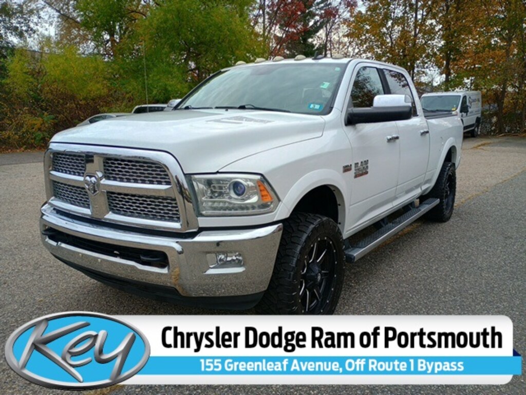 Key Chrysler Dodge Ram of Portsmouth is proud to present you with another True Market Priced Pre-Owned Vehicle. Transparent Pricing Of $ !! This 2015 Ram 2500 Laramie is loaded with the following Factory Options: Convenience Group (Auto High Beam Headlamp Control and Rain Sensitive Windshield Wipers), Heavy Duty Snow Plow Prep Group, Protection Group, Quick Order Package 22H Laramie (Front Armrest w/Cupholders and Storage Tray), 1 Year Trial (Registration Required), 10 Speakers, 115V Auxiliary Power Outlet, 220 Amp Alternator, 3.73 Rear Axle Ratio, 4-Wheel Disc Brakes, 5-Year SiriusXM Traffic Service, 5-Year SiriusXM Travel Link Service, 8.4" Touchscreen Display, ABS brakes, Air Conditioning, Alloy wheels, AM/FM radio: SiriusXM, Anti-Spin Differential Rear Axle, Audio memory, Auto Level Rear Air Suspension, Auto-dimming door mirrors, Auto-dimming Rear-View mirror, Automatic temperature control, Brake assist, Bumpers: chrome, Center Hub, Chrome Exterior Mirrors, Clearance Lamps, Compass, Delay-off headlights, Driver door bin, Driver vanity mirror, Dual front impact airbags, Dual front side impact airbags, Electronic Stability Control, Electronically Controlled Throttle, Emergency communication system, Exterior Mirrors Courtesy Lamps, Exterior Mirrors w/Heating Element, Exterior Mirrors w/Memory, Exterior Mirrors w/Supplemental Signals, Folding Flat Load Floor Storage, Front anti-roll bar, Front Bumper Sight Shields, Front Center Armrest w/Storage, Front dual zone A/C, Front fog lights, Front reading lights, Fully automatic headlights, Garage door transmitter, GPS Antenna Input, GPS Navigation, Harman Radio Manufacturer, HD Radio, Heated door mirrors, Heated Front Seats, Heated front seats, Heated steering wheel, Hemi Badge, High Back Seats, Illuminated entry, Integrated Voice Command w/Bluetooth, Keyless Enter-N-Go, Leather steering wheel, Leather Trim 40/20/40 Bench Seat, Locking Tailgate, Low tire pressure warning, Media Hub (SD, USB, AUX), Memory seat, Next Generation Engine Controller, Occupant sensing airbag, Outside temperature display, Overhead airbag, Overhead console, Panic alarm, ParkView Rear Back-Up Camera, Passenger door bin, Passenger vanity mirror, Power 10-Way Memory Driver & 6-Way Passenger Seats, Power door mirrors, Power driver seat, Power Folding Chrome Trailer Tow Mirrors, Power Folding Mirrors, Power Lumbar Adjust, Power passenger seat, Power steering, Power Sunroof, Power windows, Radio data system, Radio: Uconnect 8.4A AM/FM/SXM/BT, Radio: Uconnect 8.4AN AM/FM/SXM/HD/BT/NAV, Rear 60/40 Split Folding Seat, Rear seat center armrest, Rear step bumper, Rear Window Defroster, Remote keyless entry, Remote Proximity Keyless Entry, Remote Start System, Security system, SiriusXM Satellite Radio, SiriusXM Traffic, SiriusXM Travel Link, Speed control, Split folding rear seat, Spray In Bedliner, Steering wheel mounted audio controls, Tachomete