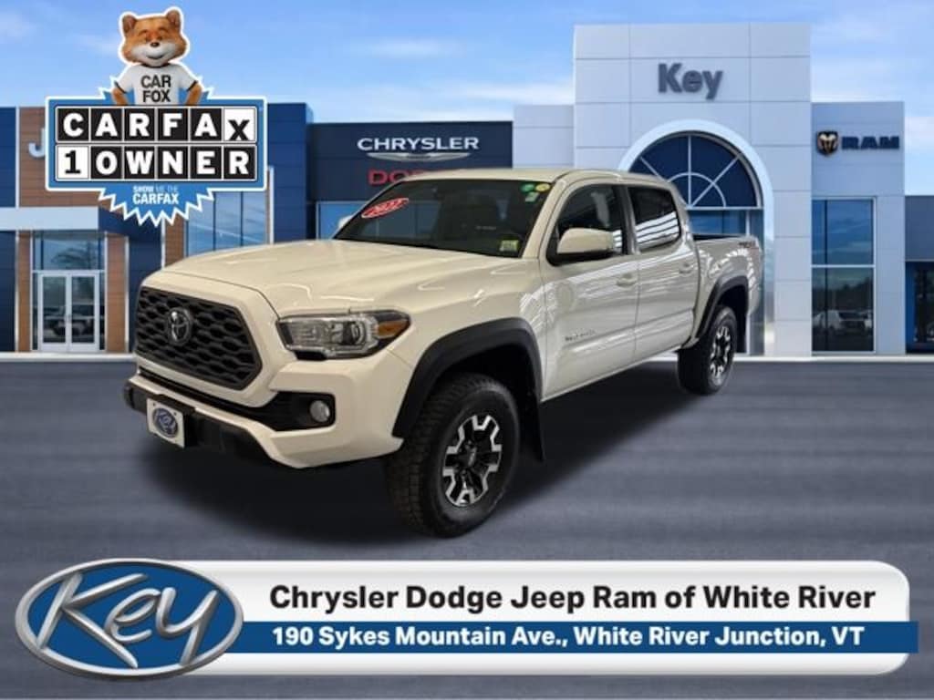 Key Chrysler Dodge Jeep Ram of White River is proud to present you with another True Market Priced Pre-Owned Vehicle. Transparent Pricing Of $ 35999 !! This 2022 Toyota Tacoma TRD Off-Road V6 is loaded with the following Factory Options: 4WD, ABS brakes, Alloy wheels, Electronic Stability Control, Front dual zone A/C, Heated door mirrors, Illuminated entry, Low tire pressure warning, Remote keyless entry, and Traction control 4WD, ABS brakes, Alloy wheels, Electronic Stability Control, Front dual zone A/C, Heated door mirrors, Illuminated entry, Low tire pressure warning, Remote keyless entry, Traction control, 120V/400W Deck Mounted AC Power, 6 Speakers, Air Conditioning, AM/FM radio: SiriusXM, Anti-whiplash front head restraints, Apple CarPlay/Android Auto, Auto High-beam Headlights, Auto-dimming Rear-View mirror, Auto-Dimming Rearview Mirror w/HomeLink, Automatic temperature control, Black Overfenders, Brake assist, Bumpers: body-color, Driver door bin, Dual front impact airbags, Dual front side impact airbags, Emergency communication system: Safety Connect with 1-year trial, Engine Immobilizer, Exterior Parking Camera Rear, Fabric Seat Trim (FD), Front anti-roll bar, Front Bucket Seats, Front Center Armrest, Front fog lights, Front reading lights, Front Seats, Front wheel independent suspension, Garage door transmitter: HomeLink, Knee airbag, Leather Shift Knob, Occupant sensing airbag, Outside temperature display, Overhead airbag, Overhead console, Panic alarm, Passenger door bin, Power door mirrors, Power driver seat, Power Sliding Rear Window w/Privacy Glass, Power steering, Power windows, Radio: AM/FM Radio, Rear step bumper, Security system, Speed control, Speed-sensing steering, Split folding rear seat, Steering wheel mounted audio controls, Tachometer, Telescoping steering wheel, Tilt steering wheel, Trip computer, Turn signal indicator mirrors, Variably intermittent wipers, and Wheels: 16" x 7J Machined Contrast Alloy!!